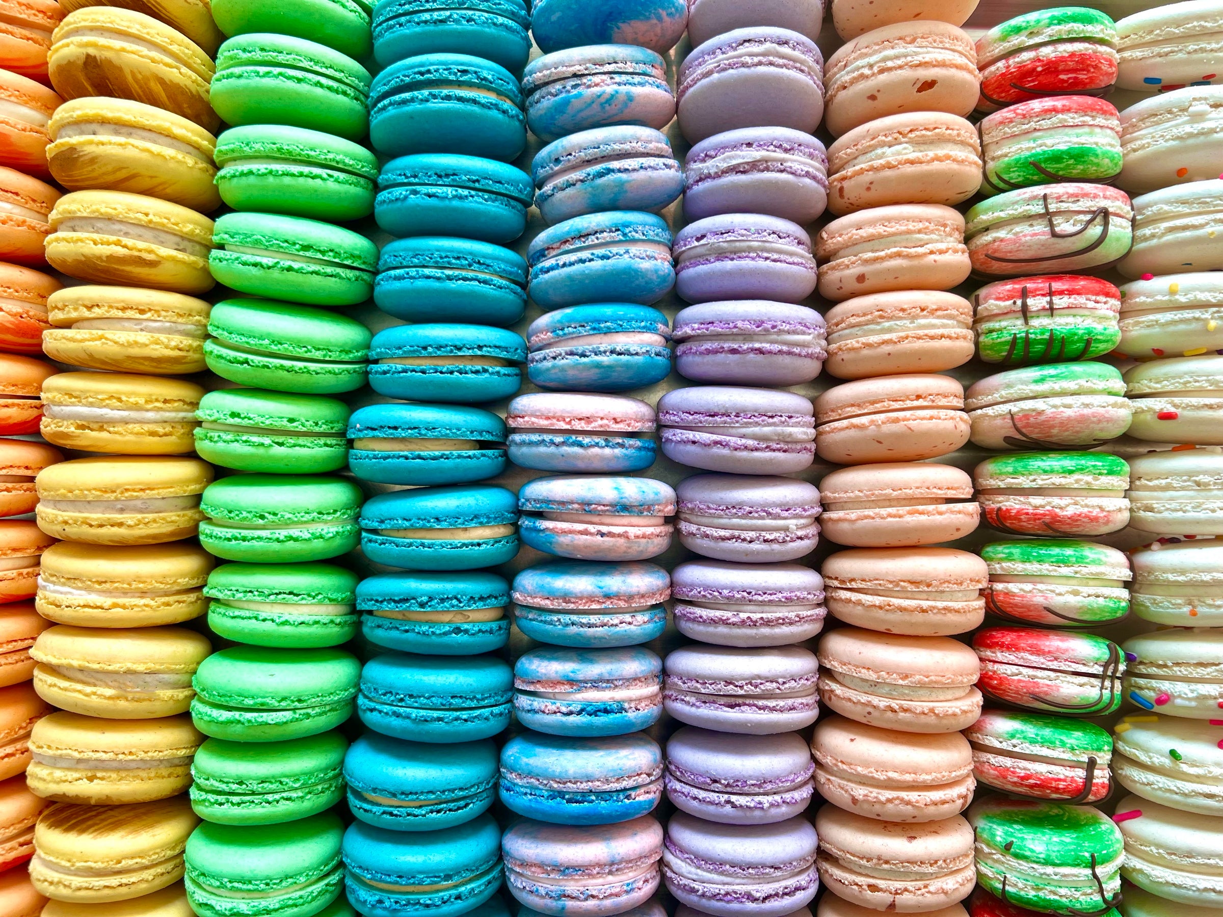 Chocolate Fluffernutter Macarownie cut in half with fluff oozing out
